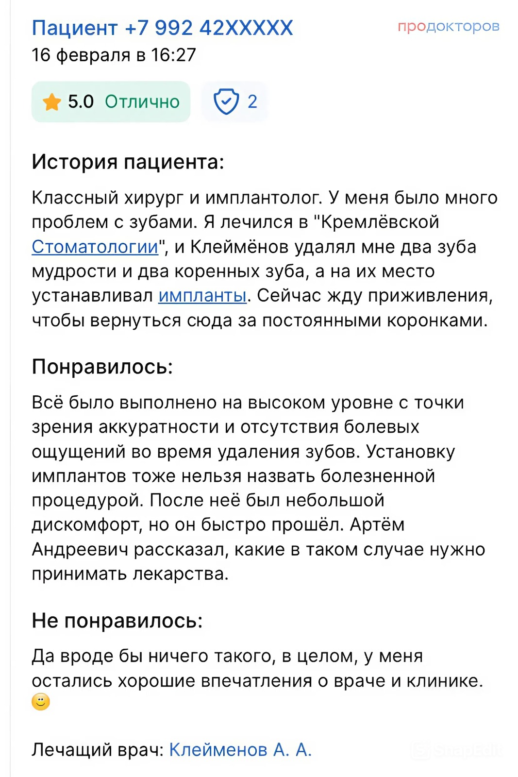 Мы используем только проверенные материалы и сертифицированные имплантационные системы с приживаемостью до 98–99%. На все работы наших врачей предоставляется 1 год гарантии, а пожизненная гарантия на имплант идёт от производителя. Благодаря такому комплексному подходу вы можете быть уверены в долговечности и высоком качестве лечения.