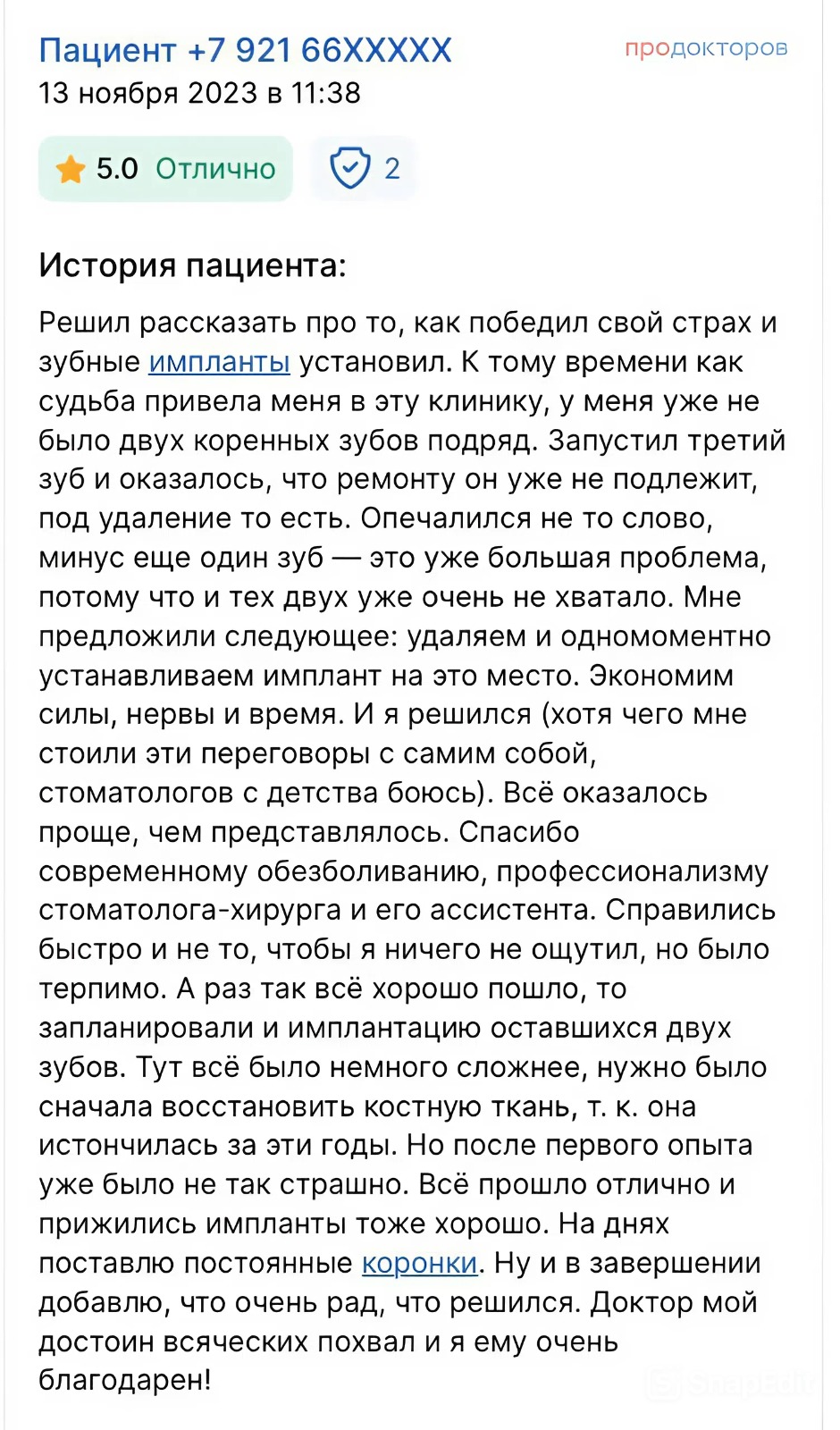 Для обезболивания применяются современные анестетики, а по желанию пациента возможна седация. От момента первого приёма и до установки постоянной коронки вы находитесь под внимательным наблюдением, а все процедуры проводятся быстро и практически без дискомфорта.