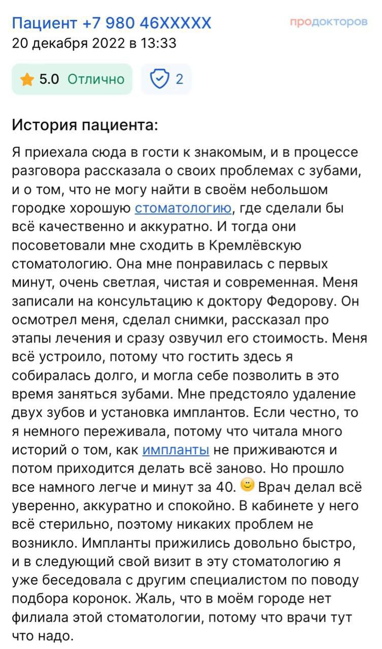 Кремлевская стоматология основана в 2007 году. Наша клиника предлагает все виды лечения зубов, в том числе имплантацию зубов, лечение зубов под микроскопом, терапию десен на аппарате Vector. Мы единственные в Рязани имеем статус центра клинического мастерства швейцарской компании Nobel Biocare, лидера в производстве зубных имплантатов.