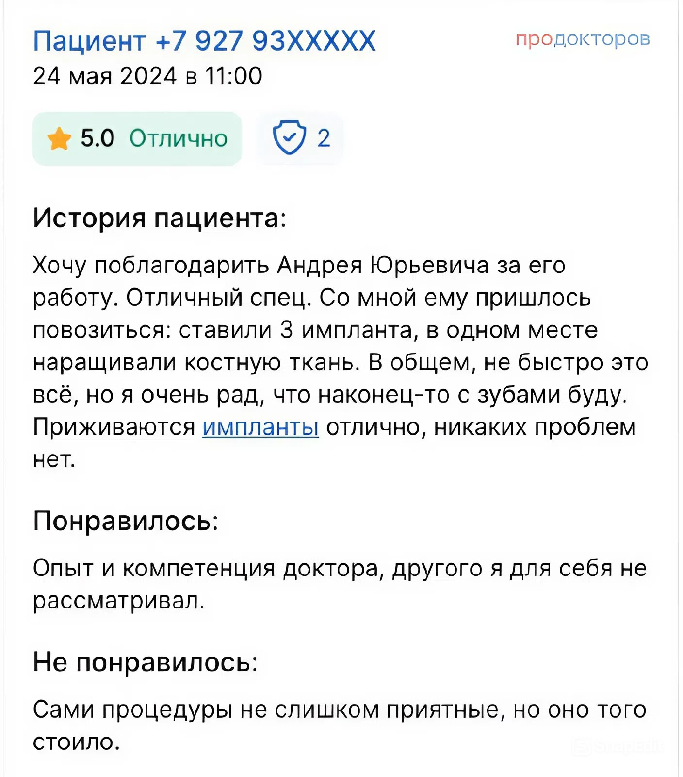 Гарантированное приживление имплантов до 99%